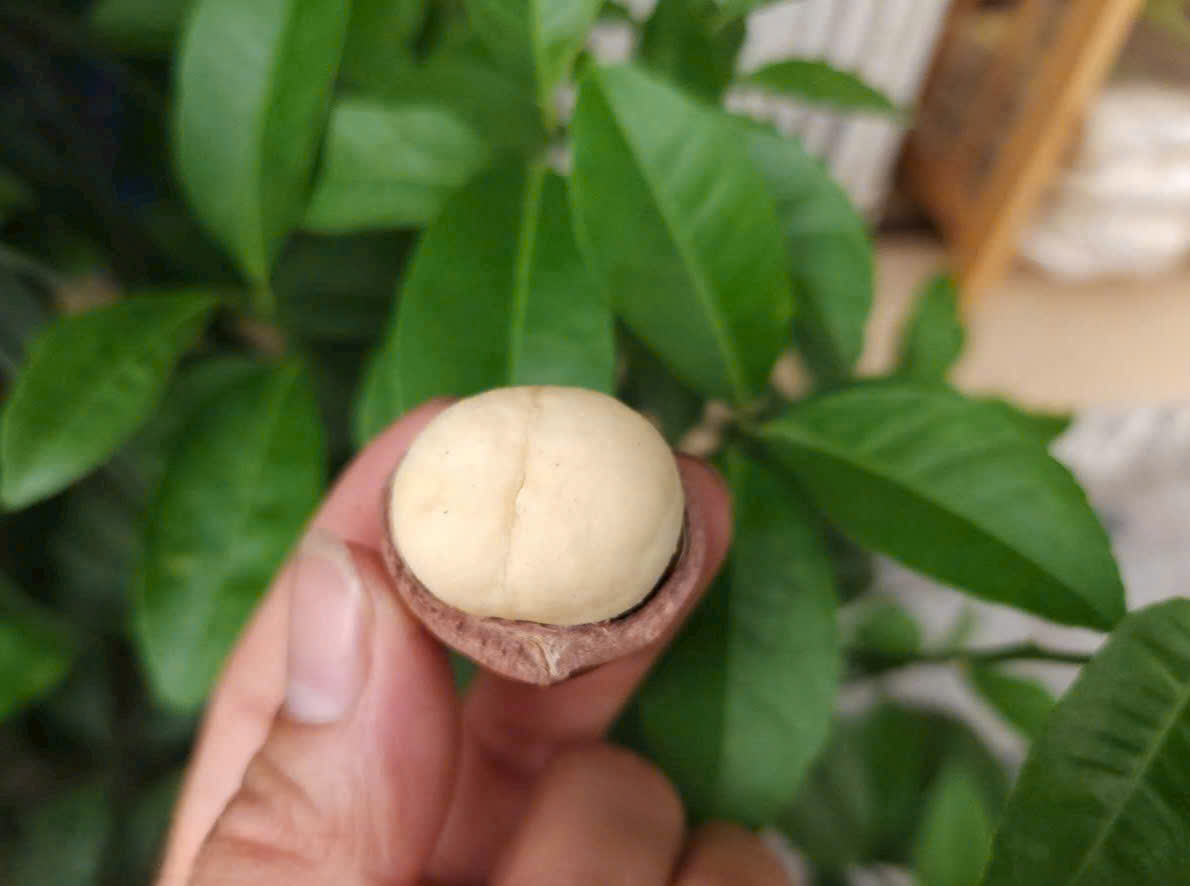 Nhìn hạt macca tròn đầy, trắng mướt, cắn vào là thấy ngay vị giòn rụm, béo bùi lan khắp miệng – đã ăn là mê liền.